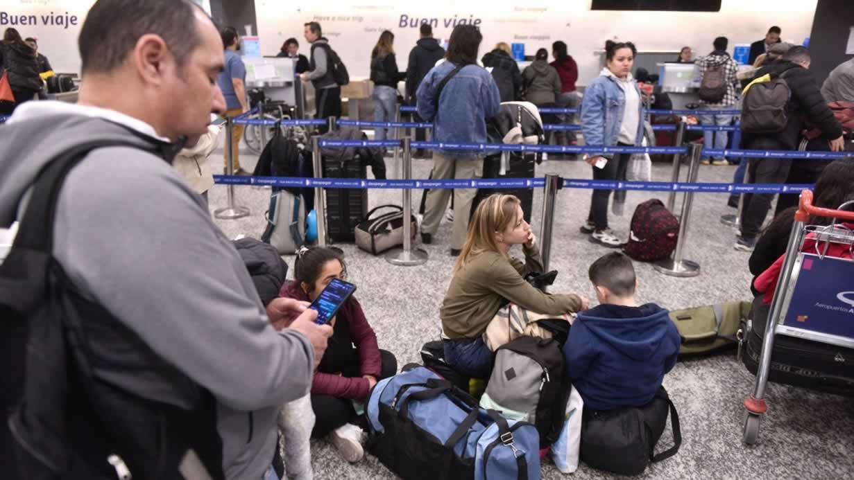 Una asamblea gremial de maleteros afectó casi 70 de vuelos que salían del Aeroparque Jorge Newbery en las empresas JetSmart y Flybondi, lo que dejó al menos 17.000 pasajeros sin poder viajar este lunes. Al mediodía, el Ministerio de Trabajo dictó la conciliación obligatoria, pero recién fue acatada pasadas las 18 horas. Las demoras en los arribos y partidas podrían extenderse.