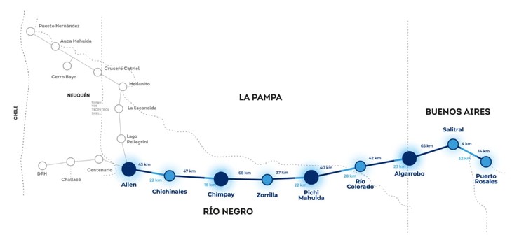 De esta forma, las estaciones de bombeo operativas de Puesto Hernández y Medanito, tendrán un caudal caudal 67.000m³/d en la etapa uno, que ascenderá a 91.000m³/d en la segunda fase de obras (572 mil barriles diarios).