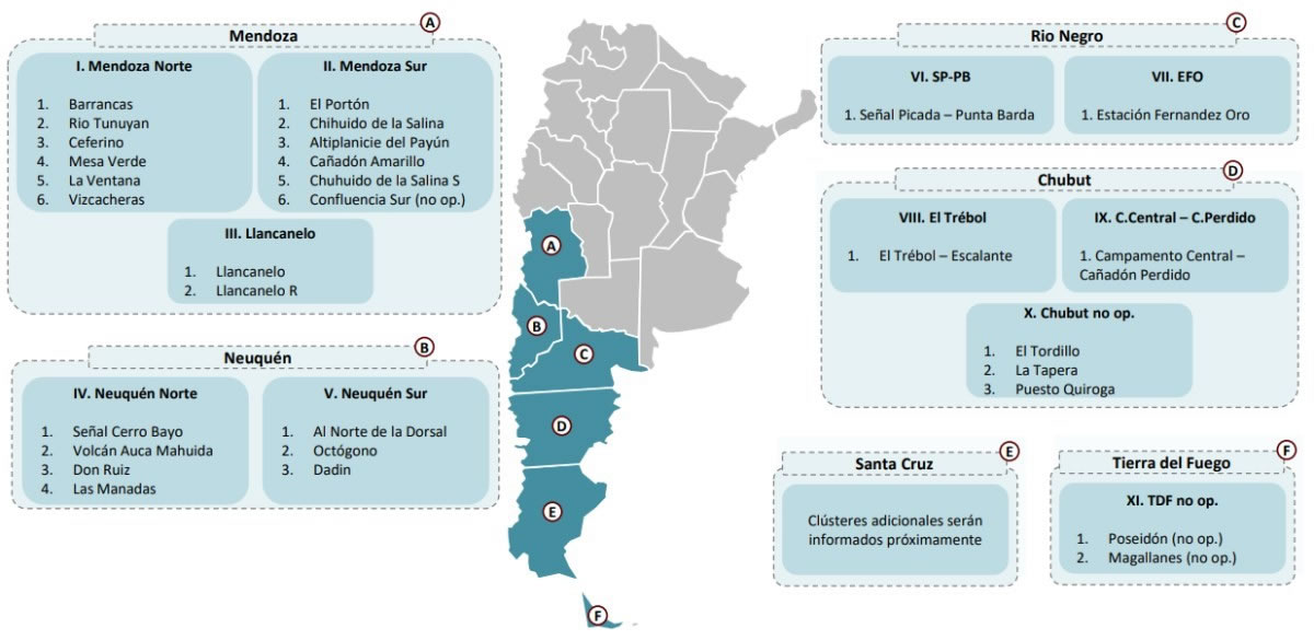 El segundo clúster por el cual se firmaron los contratos de cesión de áreas es uno de los que concentró el interés de varias empresas, ya que se trata de Mendoza Sur, un paquete de seis áreas formado por bloques de peso como El Portón (que está en Neuquén), Chihuido de la Salina, Altiplanicie del Payún, Cañadón Amarillo, Chihuido de la Salina Sur (en Neuquén) y Confluencia Sur.