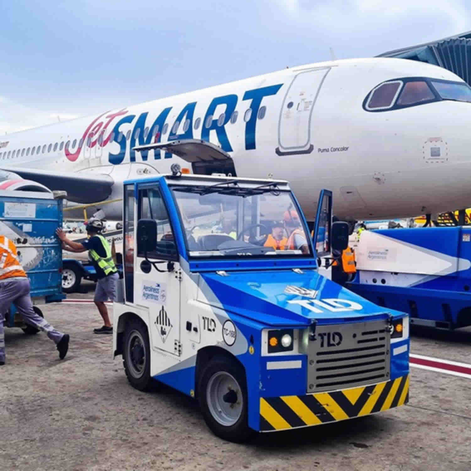 El acuerdo firmado con la low cost JetSmart, que se inició este mes, consiste en la provisión de señalización, colocación de escaleras, alquiler de generadores, movimientos de equipajes y pasajeros, y remolque de aeronaves, entre otras tareas.