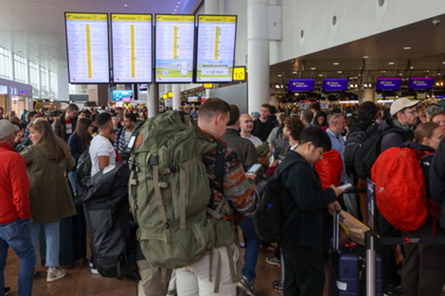 Si bien los tableros de salidas de los aeropuertos de Heathrow en Londres y Brandeburgo en Berlín mostraban signos de llegadas y salidas más fluidas, el Aeropuerto de Bruselas continuó enfrentando problemas considerables.