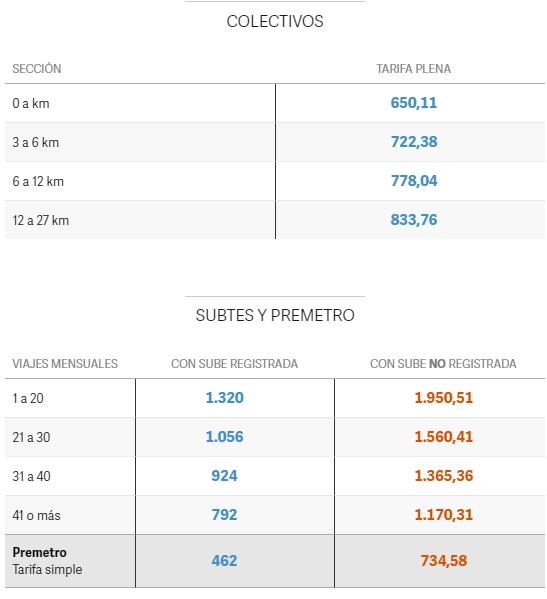 Si la comparación es con los trayectos de dos secciones, de 3 a 6 kilómetros, de los colectivos de jurisdicción nacional (cuestan $ 551,24), la diferencia es del 139% con el subte y del 31% con los colectivos porteños.